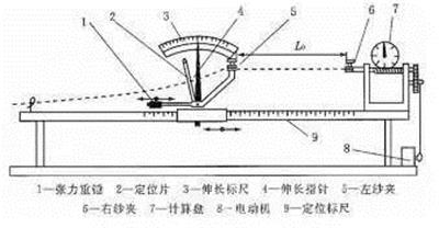退捻加捻法是假設(shè)在一定張力下,紗線解捻后紗線伸長量與反向加捻時(shí)紗線縮短量相同的前提下進(jìn)行測試的。一個(gè)典型的測試裝置如圖所示。
